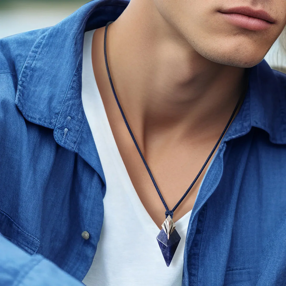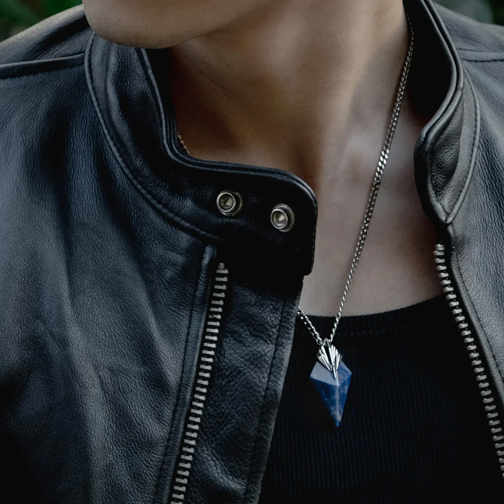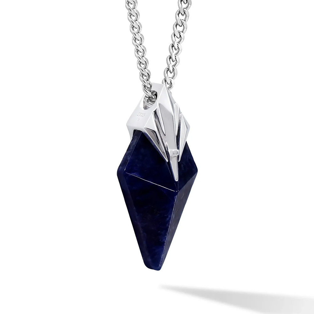 The pendant is shaped using a thirteen facet geometric cutting technique, with each surface carefully calculated and polished to perfection. Light reflects across the stone in layered dimensions, creating a striking balance between sharp structure and refined elegance.