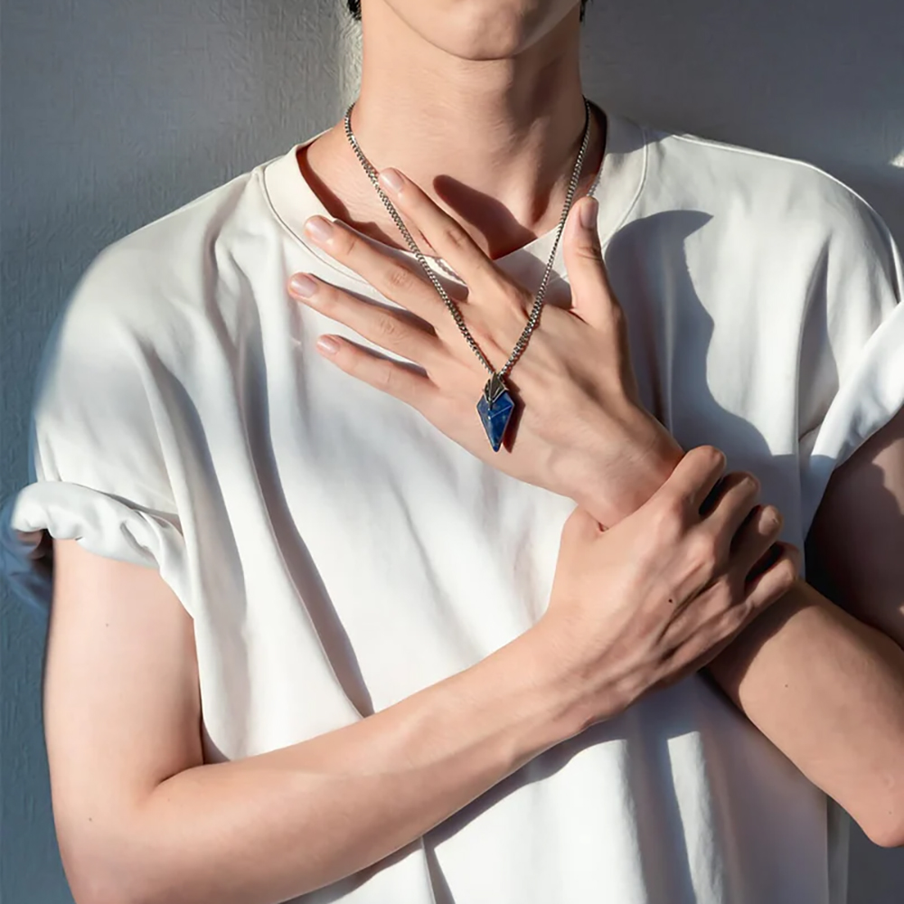Wearing this necklace feels like being surrounded by the unseen strength of the sea. When paired with black agate and blue line stone bracelets, the sense of protection and presence is further enhanced.